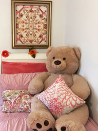 "Our client desired a transformation from blue to pink for her daughter's bedroom, we creatively utilized existing items, repurposed furniture with a touch of gold spray paint, and adorned the walls with cost-free vintage frames. The addition of a pastel pink tapestry, cut and secured to the frames, served as both wall decor and a unique curtain accent, using the extra material with tassels. By rearranging furniture and making strategic purchases, we maximized the impact of the room makeover."